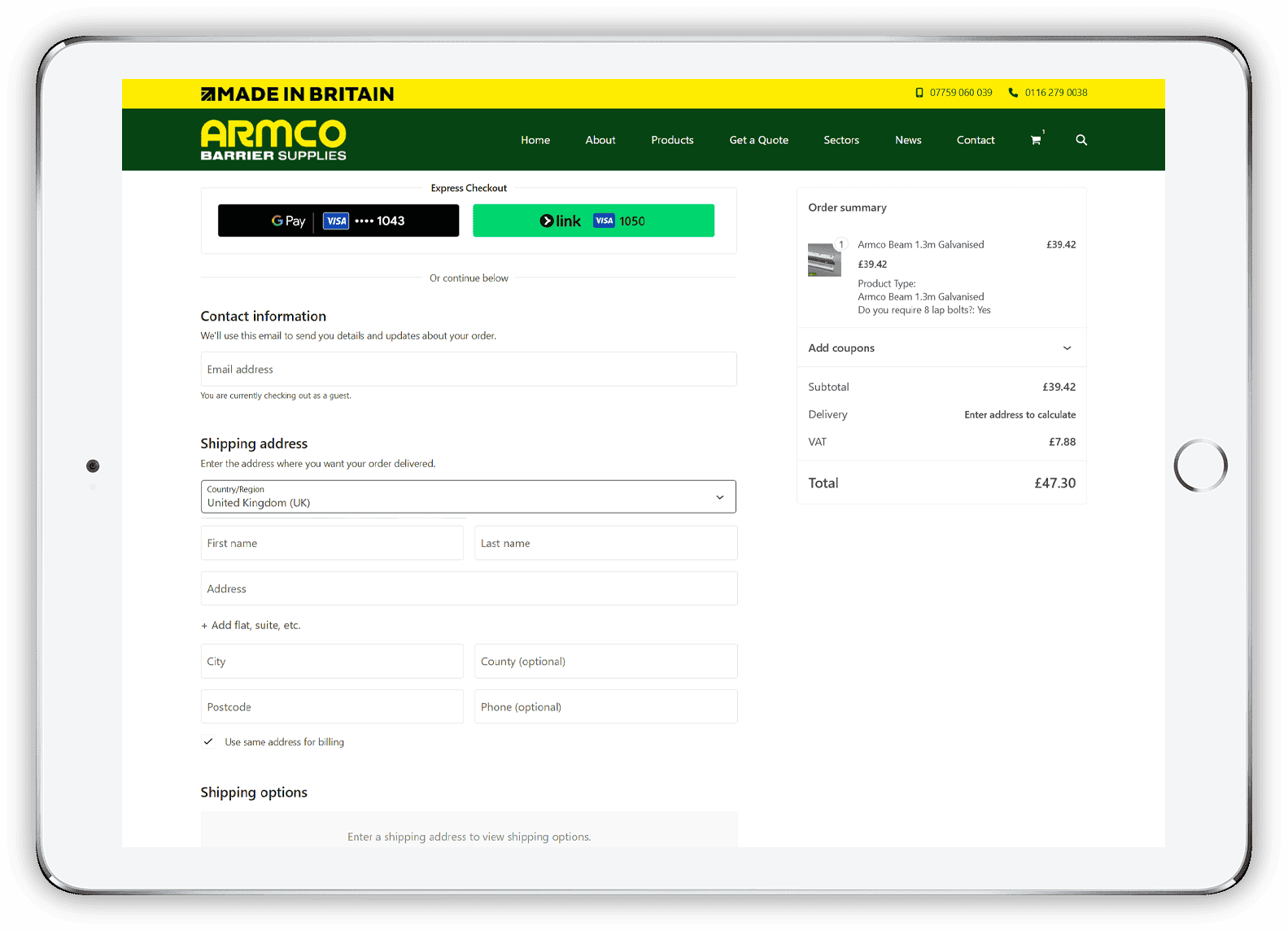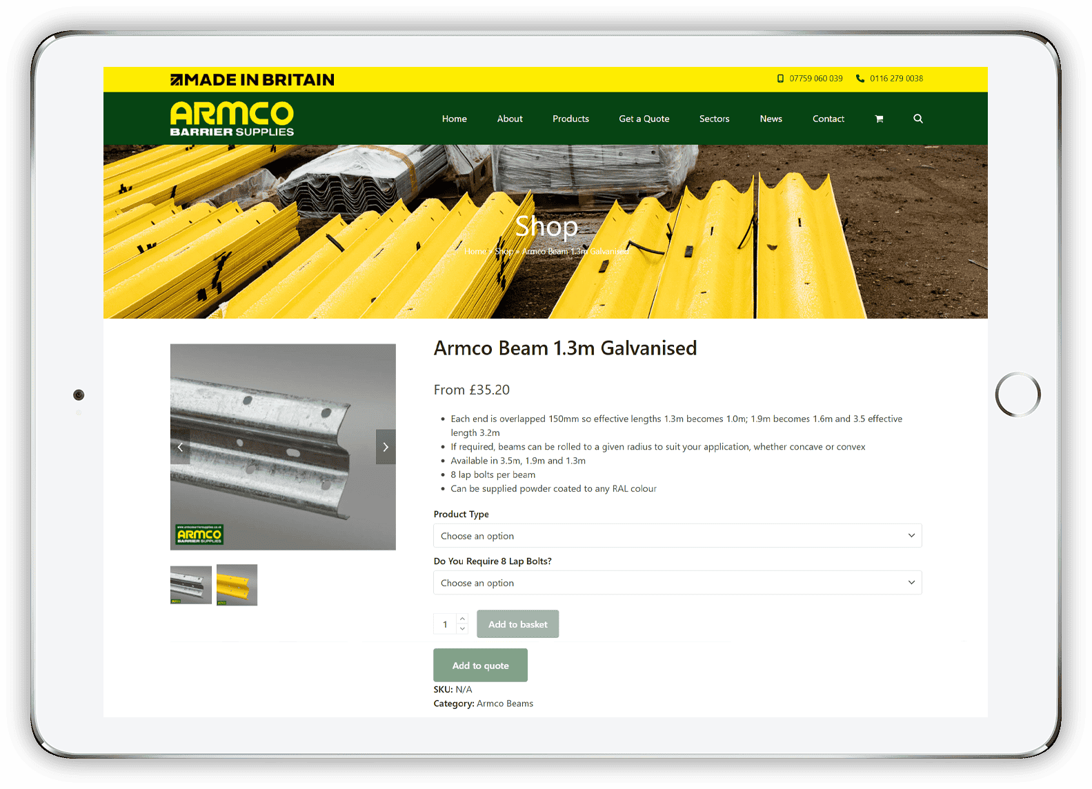 In addition to standard eCommerce features, the site includes a ‘Request a Quote’ option for products or quantities that fall outside typical purchase parameters. This allows trade customers and larger buyers to obtain tailored pricing quickly, helping Armco Barrier Supplies serve both individual and commercial markets efficiently.